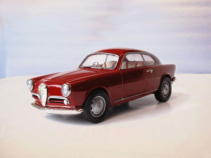 Very nice Resine model of the Alfa Romeo Giulietta Sprint 1st Series. Detailed interior with real cream cloth upholstery with red piping.
