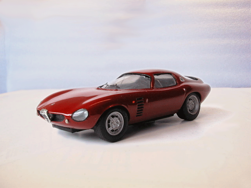 Resine model of the TZ1 based Alfa Romeo Canguro Prototype by Bertone. Authentic colors, perfectly detailed.